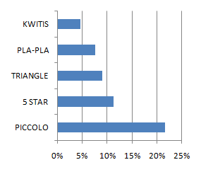 | Figure 2. Top-Five Firecrackers Used (N=134) Fireworks Injury Surveillance 6:00 AM December 21-30, 2007 | ||