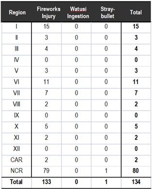 | B. Watusi Ingestion There was no reported case of watusi ingestion. C. Stray Bullet Injuries There is still just one stray bullet injury. | ||